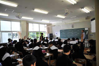 Com a base na filosofia「質実剛健、協同親和」, temos como objetivo pensar nas pessoas e educar alunos que pensem nas pessoas e que pensem em sí mesmo.
